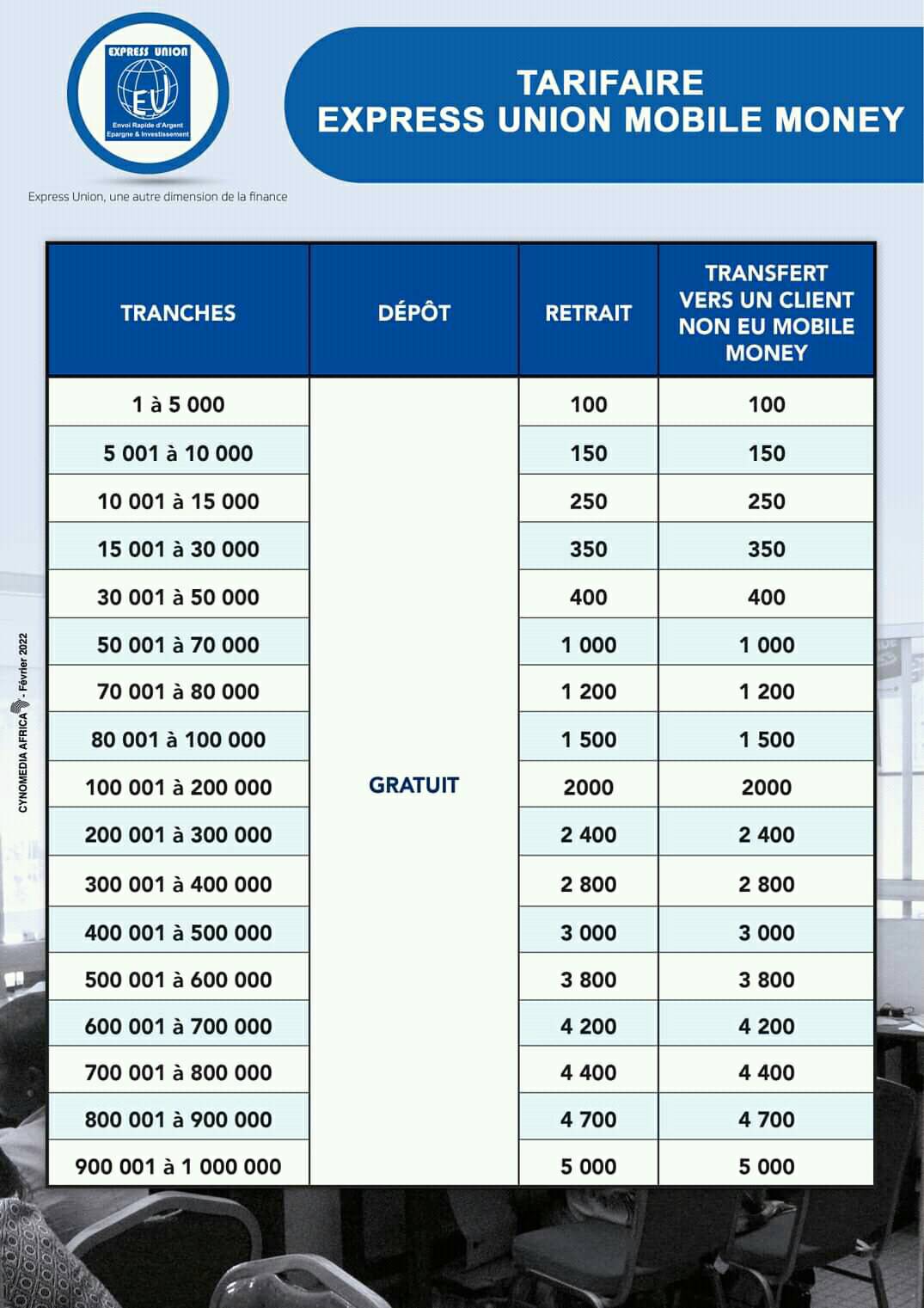 L’établissement de microfinance Express Union Finance, lui aussi a une solution de transfert d’argent par mobile. La première développée au Cameroun d’ailleurs par un établissement de microfinance. C’est EU Mobile Money.